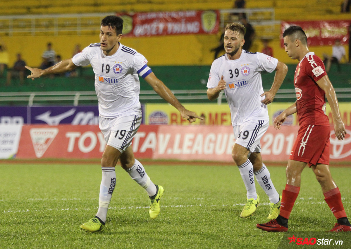 Trong khi đó ở dưới sân, TP.HCM với mũi nhọn Da Sylva dâng lên tấn công mạnh mẽ nhằm tìm kiếm bàn gỡ hòa. Với thể hình hơi giống với Lukaku (MU), tiền đạo mang áo số 27 nhiều lần làm khổ hàng thủ đội khách.