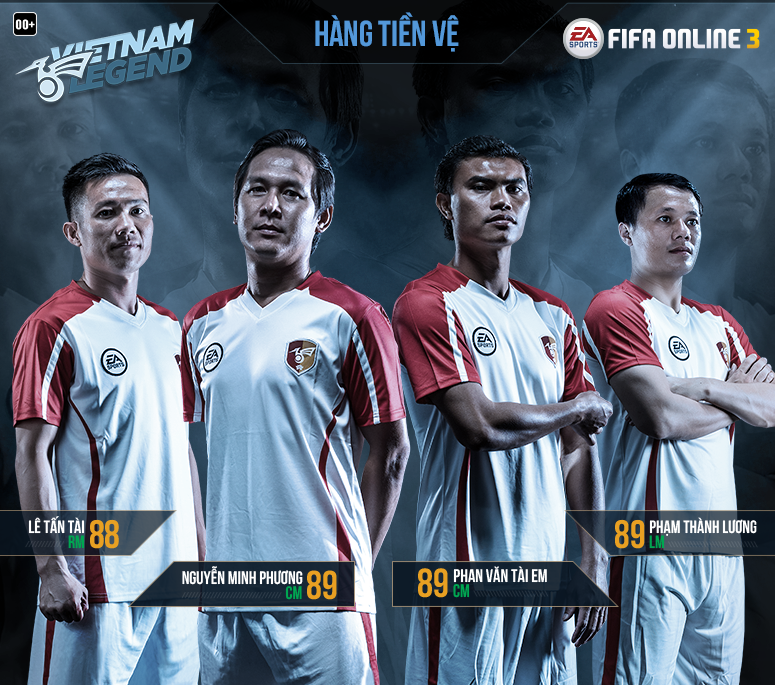 Danh sách “huyền thoại Việt Nam” vừa ra mắt gồm 9 cầu thủ được chia thành 3 tuyến với bộ chỉ số ngang ngửa với các huyền thoại bóng đá thế giới trong game. Ở hàng phòng ngự gồm 3 cái tên: thủ thành Dương Hồng Sơn, trung vệ Vũ Như Thành và trung vệ Lê Phước Tứ.