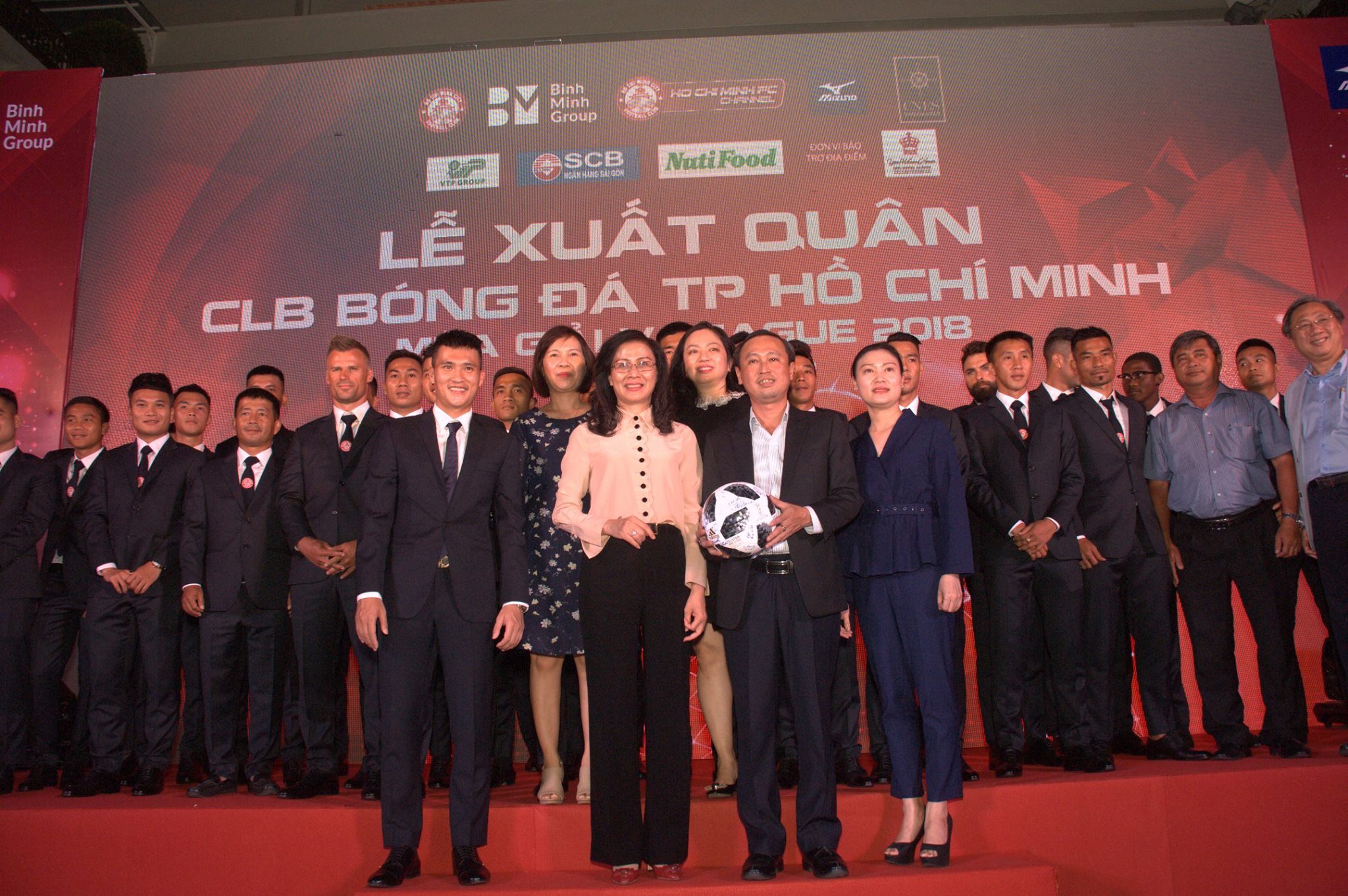 Công Vinh nhận nhiệm vụ từ lãnh đạo TP.HCM cho mùa bóng 2018. Ảnh: CLB TP.HCM
