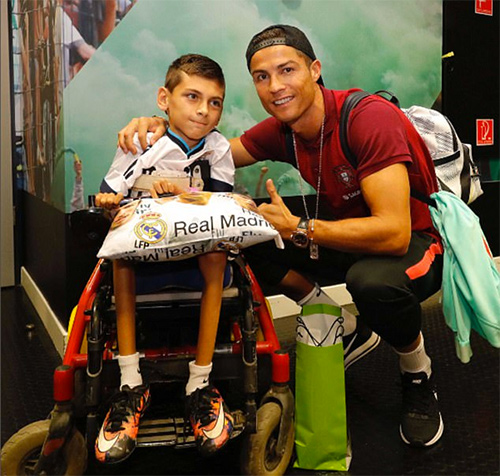 Trước trận Bồ Đào Nha gặp Hungary trong khuôn khổ vòng loại World Cup 2018, Cristiano Ronaldo gây bất ngờ cho một CĐV nhỏ tuổi ở Budapest. Tiền đạo 31 tuổi đã đến gặp cậu bé ngồi trên xe lăn, tặng áo thi đấu của Real Madrid và chiếc gối có biểu tượng của CLB Hoàng gia Tây Ban Nha.