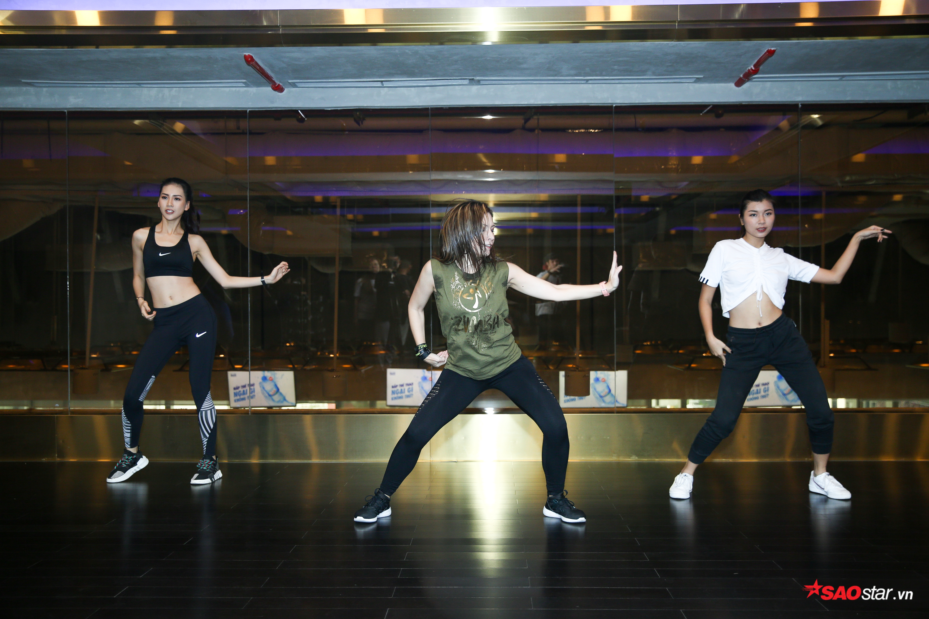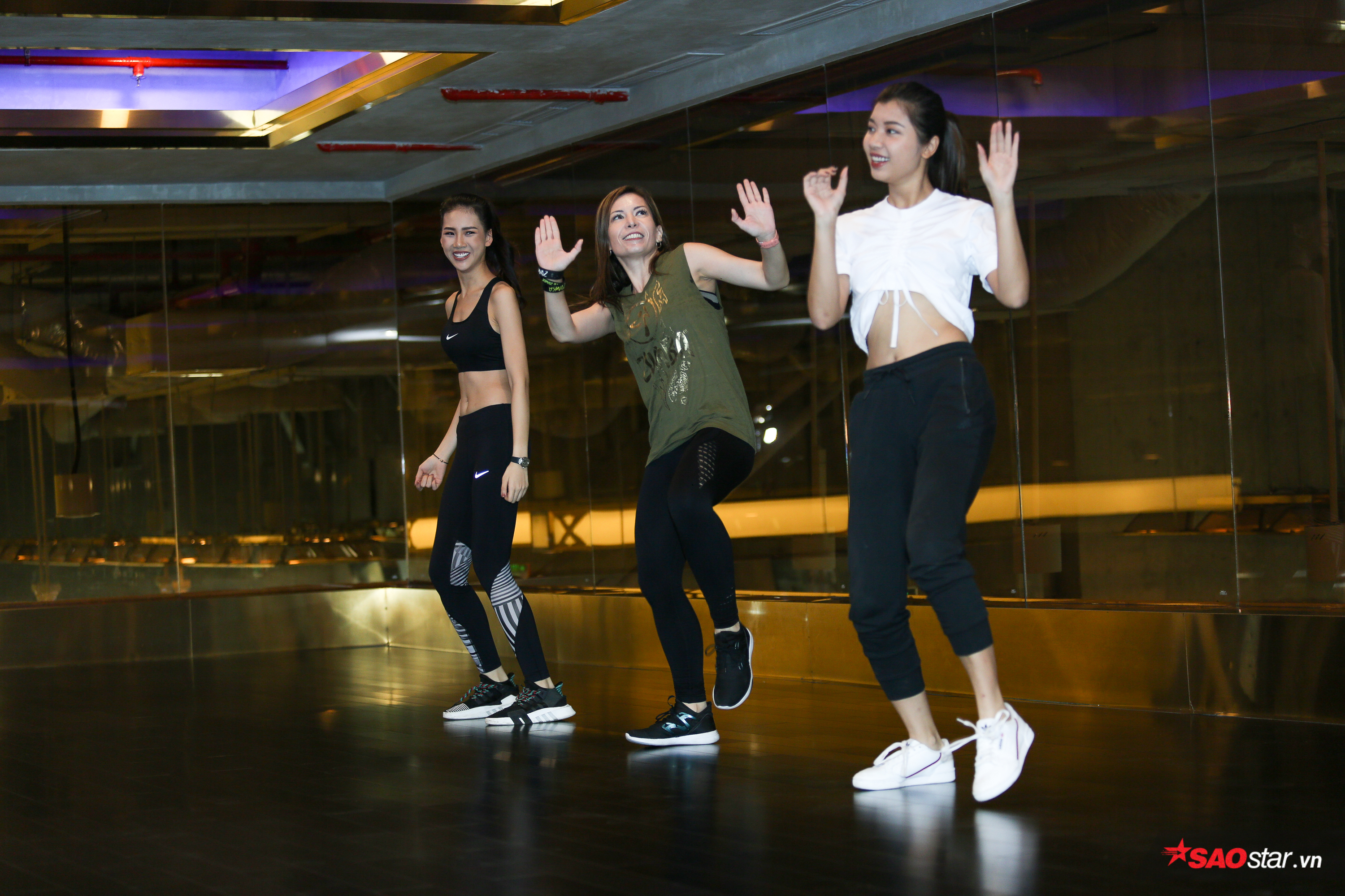 Bên cạnh đó, hai người đẹp cũng chia sẻ Zumba giúp ích khá nhiều cho công việc hiện tại của mình, khi có thể thoải mái giải phóng hình thể khiến việc diễn xuất, tạo dáng trước ống kính được nhuần nhuyễn và điêu luyện hơn.