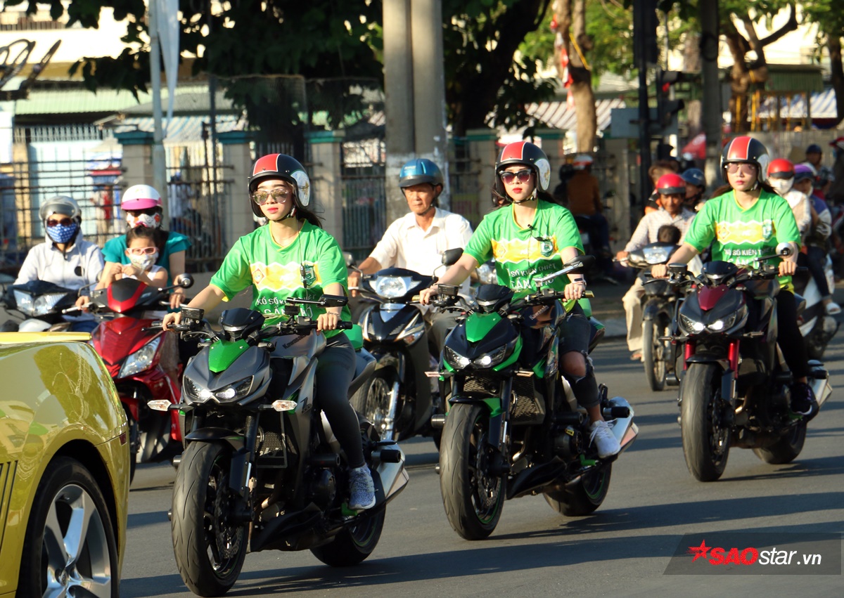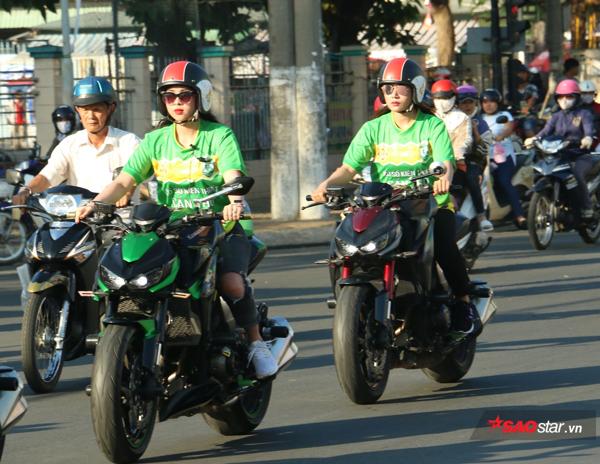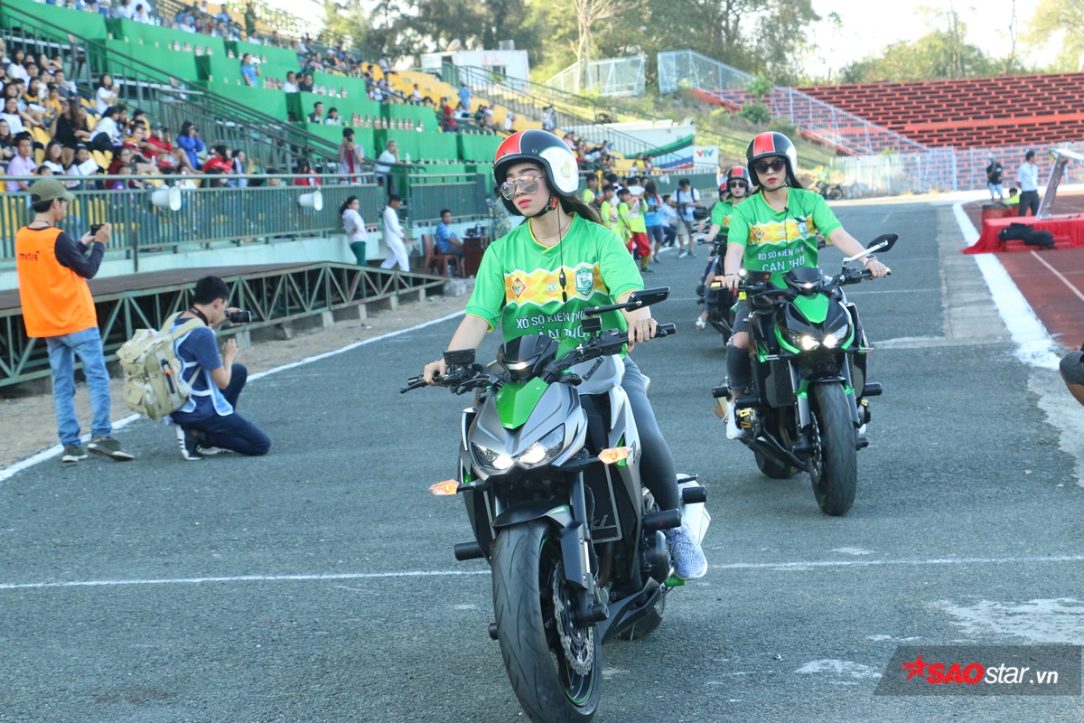 Kim Nguyên - hot girl từng dậy sóng Tây Đô dẫn đầu đàn xe đi vòng quanh sân Cần Thơ.
