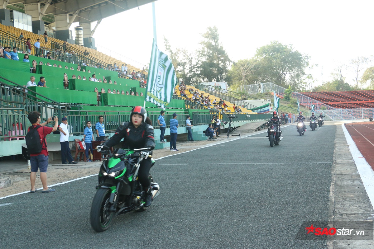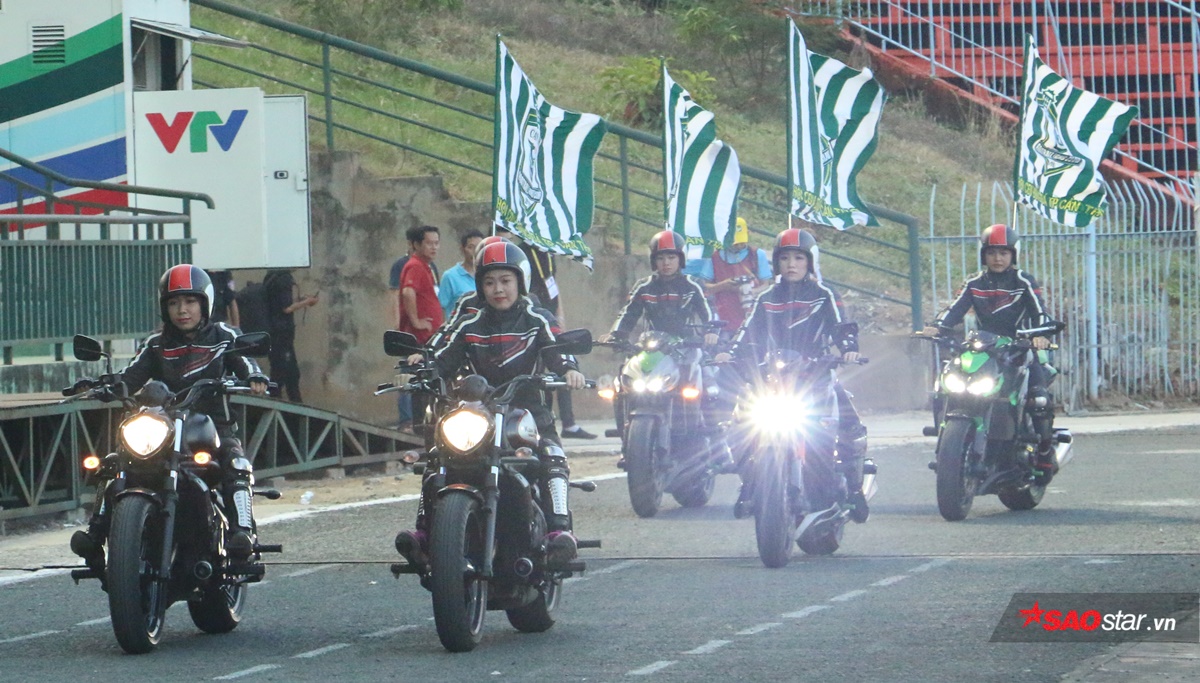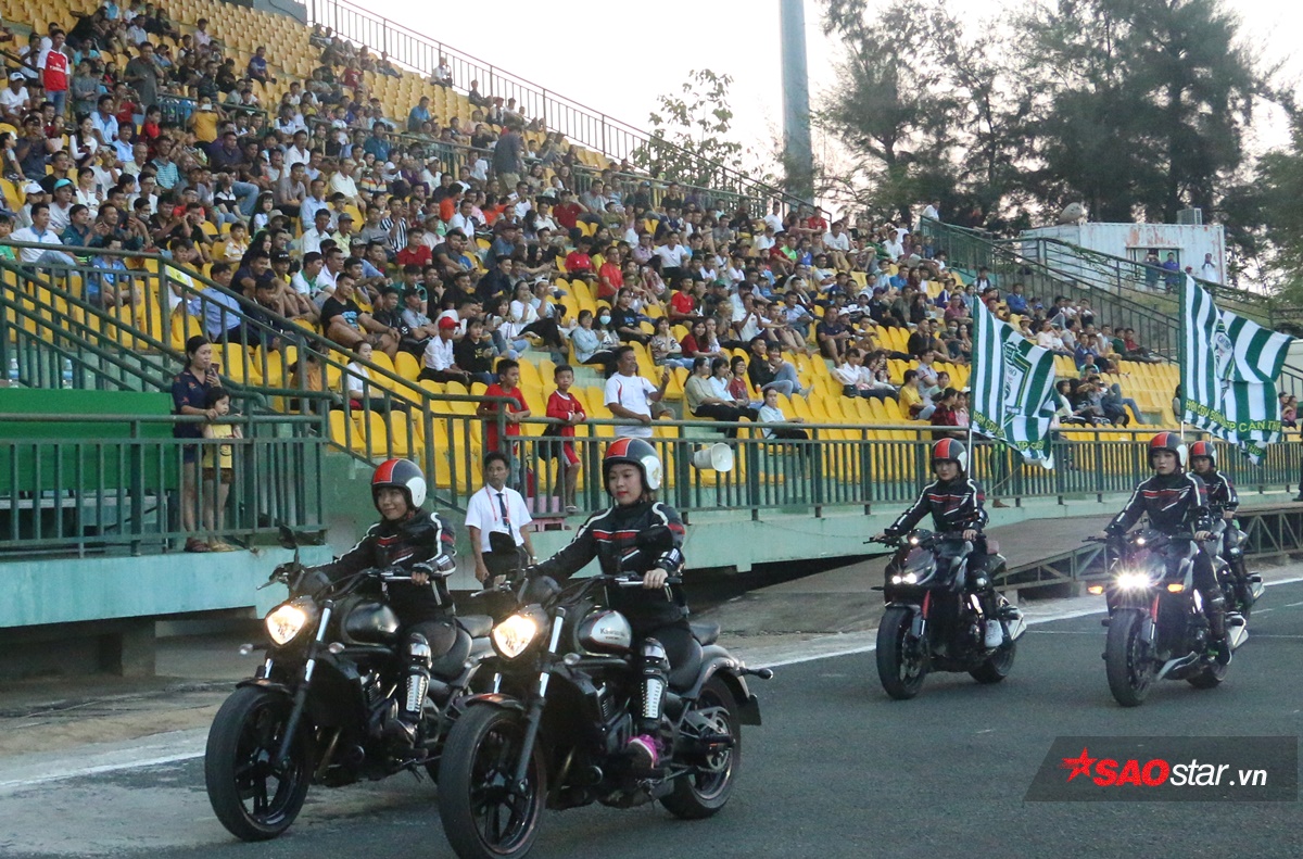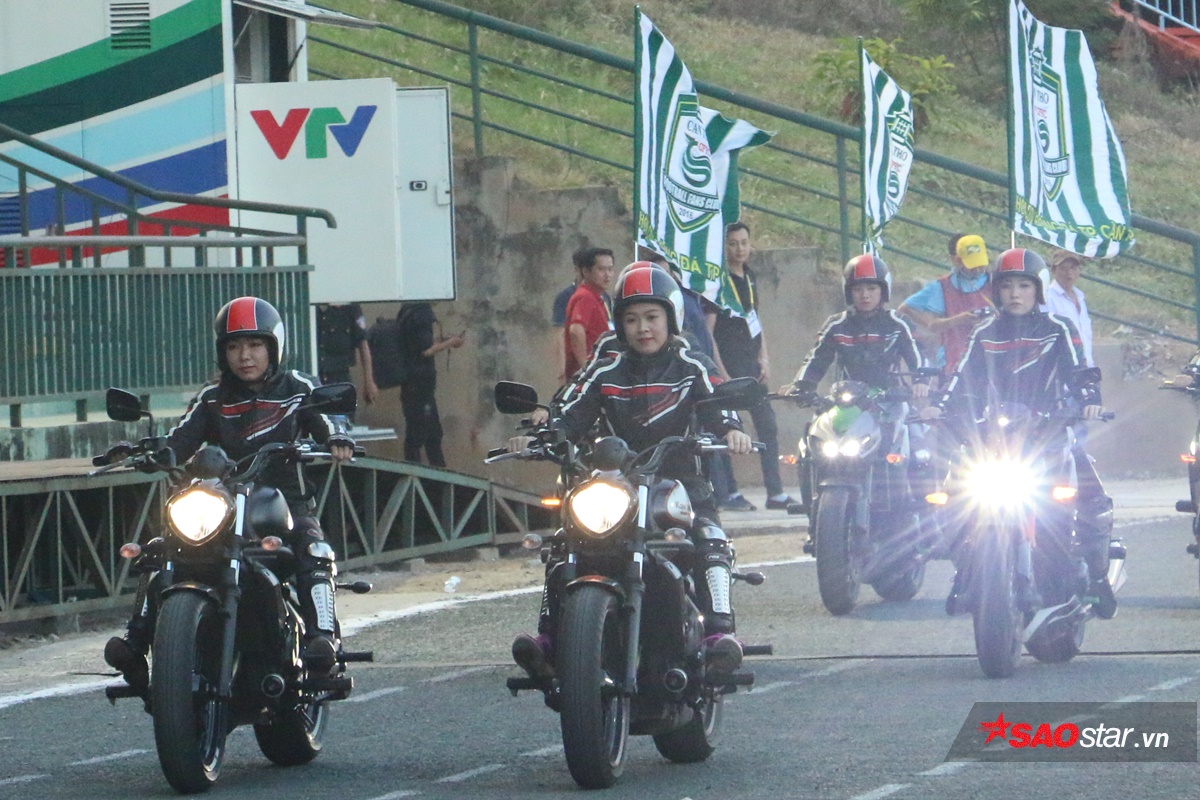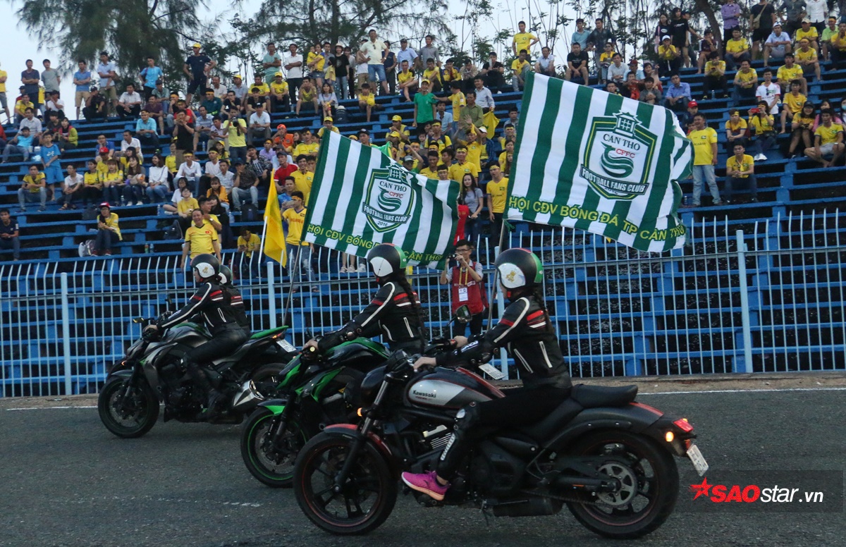 Nhờ có sự cổ vũ của đội mô tô, sân Cần Thơ tăng thêm bầu không khí sôi động. Họ mang đến tính giải trí cao cho khán giả trước và giữa trận đấu.
