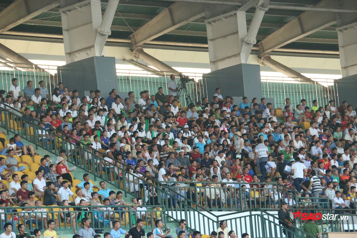 Khán giả ngồi chật cứng khán đài A để cổ vũ cho hai đội.