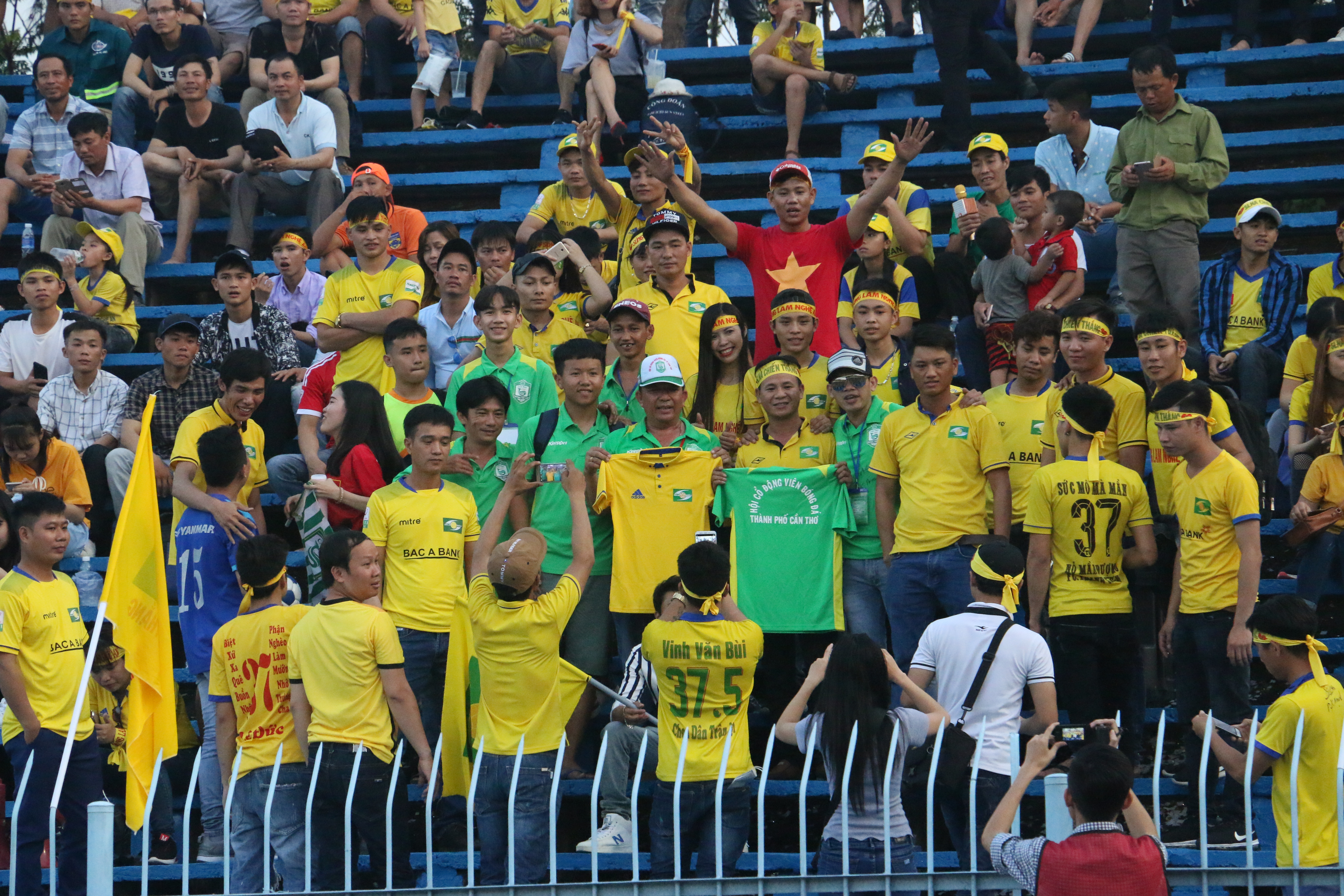 Hội CĐV của hai đội Cần Thơ và SLNA giao lưu nhau. Một điều hết sức ý nghĩa để cho thấy một nét đẹp lớn trên khán đài.
