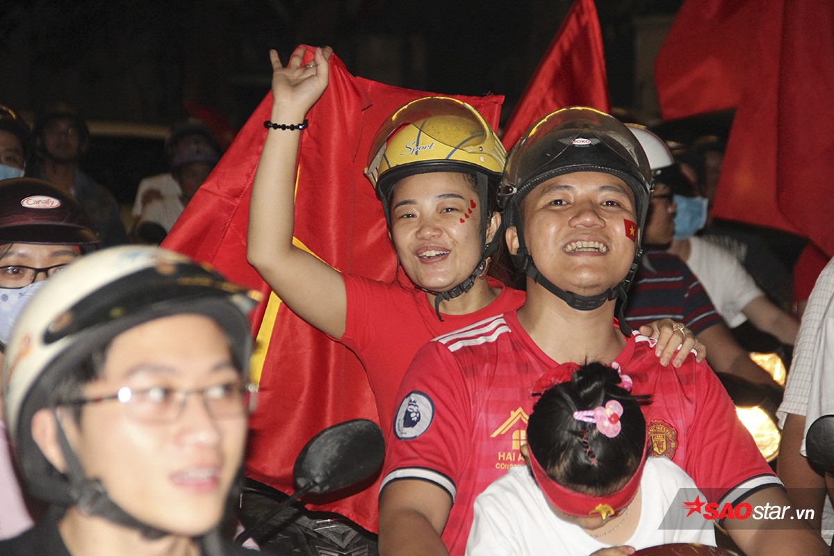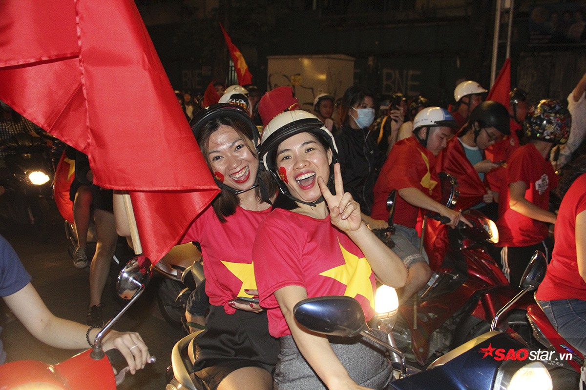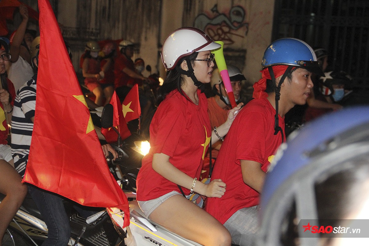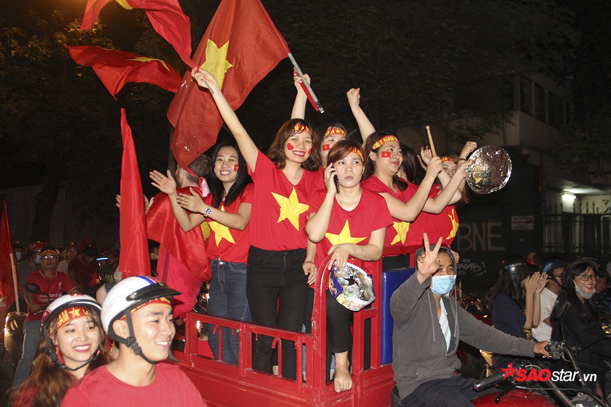 Fan nữ liên tục vẫy cờ và hò hét khẩu hiệu “Việt Nam vô địch”.