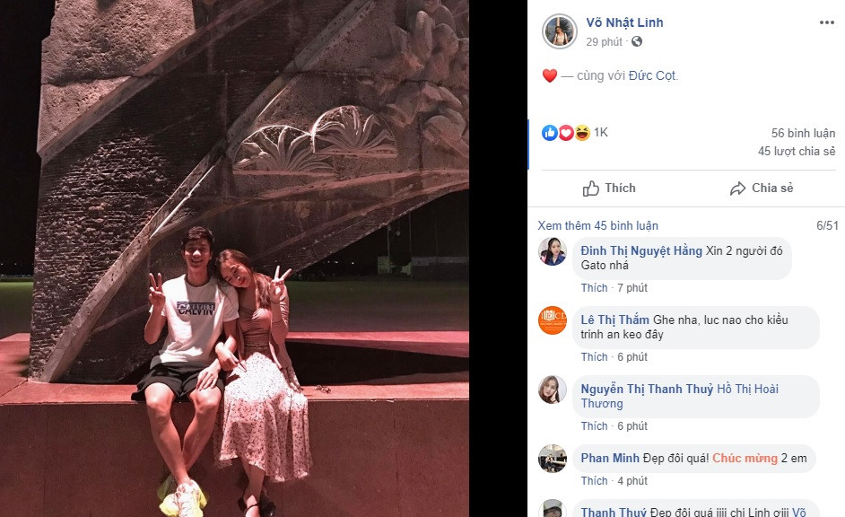 Cặp đôi Văn Đức - Nhật Linh thể hiện tình cảm ngay trên MXH.