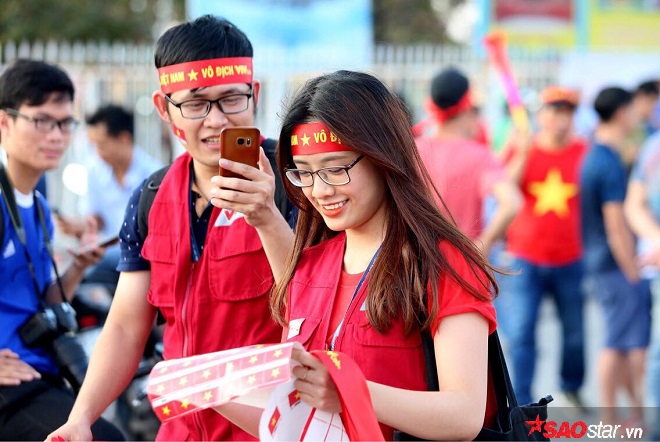 Nữ CĐV Việt Nam tự tin vào một kết quả thuận lợi dành cho đội nhà.