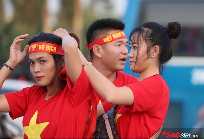 Một số CĐV Việt Nam đã chuẩn bị sẵn sàng cho màn cổ vũ diễn ra trên sân Mỹ Đình.