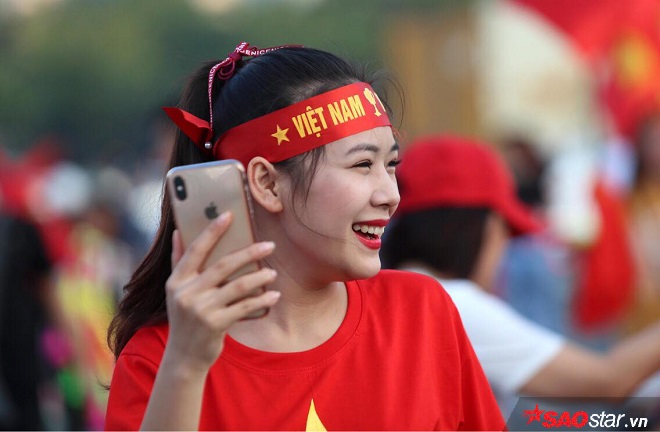 Nữ CĐV Việt Nam tự tin trước ống kính.