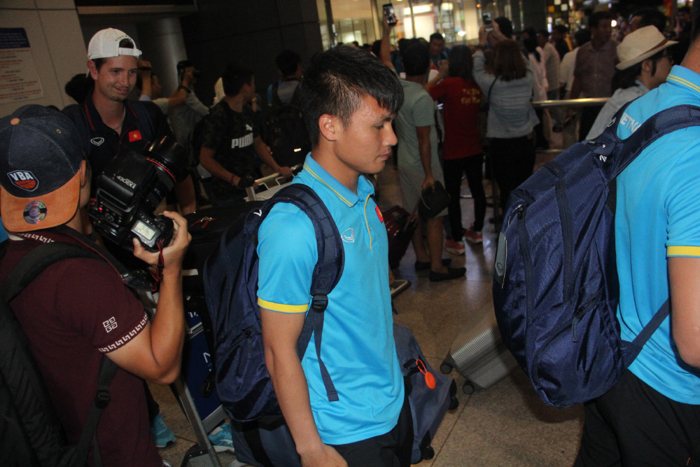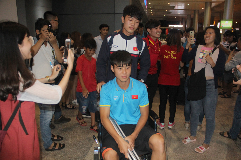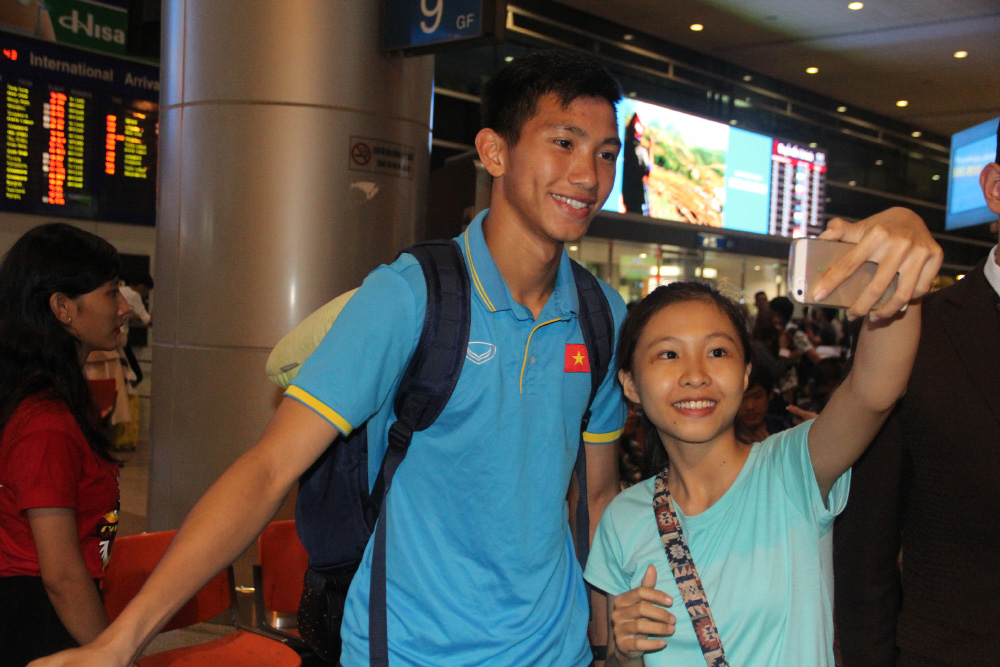 Tối ngày 26/8, U22 Việt Nam trở về nước sau kỳ SEA Games không mấy thành công. Từ trước đó 1h đồng hồ, đã có nhiều fan nữ ra sân bay Tân Sơn Nhất (TP.HCM) để chờ đón thầy trò HLV Hữu Thắng.