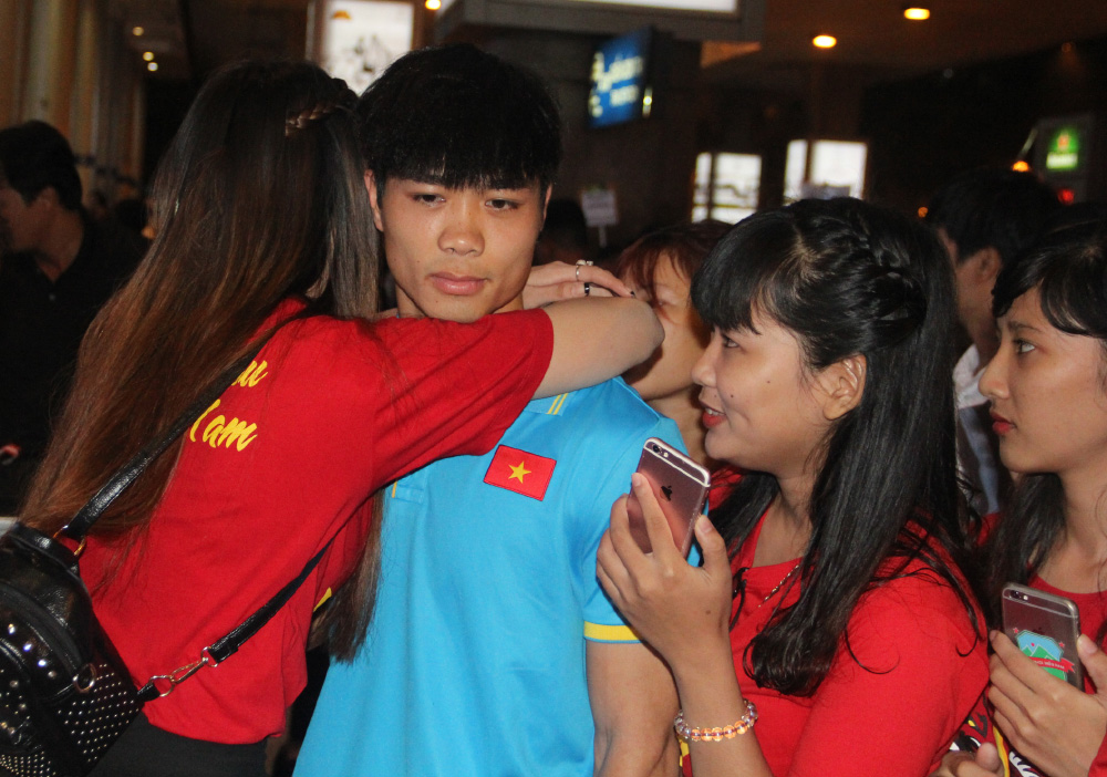 Video Công Phượng và đồng đội được fan nữ chào đón tại sân bay.