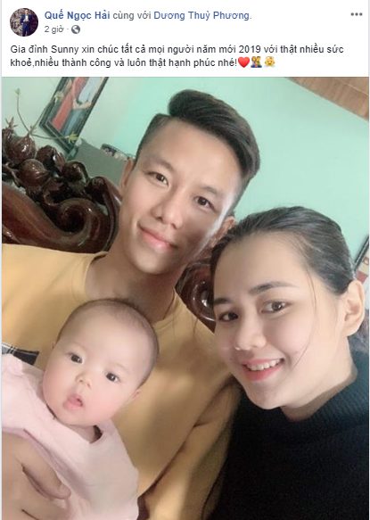 Đội trưởng ĐTVN - Quế Ngọc Hải lại hóa “người đàn ông của gia đình” khi đăng bức ảnh hạnh phúc cùng cô vợ Thùy Phương và cậu con trai bé bỏng. Gia đình nhỏ này có lẽ là nguồn động lực vô cùng to lớn giúp cho Hải thi đấu thăng hoa trong lần quay trở lại này,