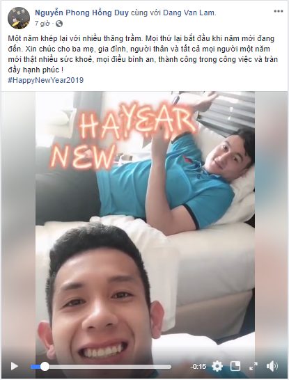 Bức ảnh vói thần thái rạng ngời của Bùi Tiến Dũng khiến fan nữ phải rụng tim.Trong khi đó, Nguyễn Phong Hồng Duy lại chọn bức ảnh khai xuân cùng với bạn cùng phòng Văn Lâm. Cả hai còn quay hẳn một đoạn clip ngắn với đoạn loạt biểu cảm vô cùng dễ thương dòng chữ Happy New Year.