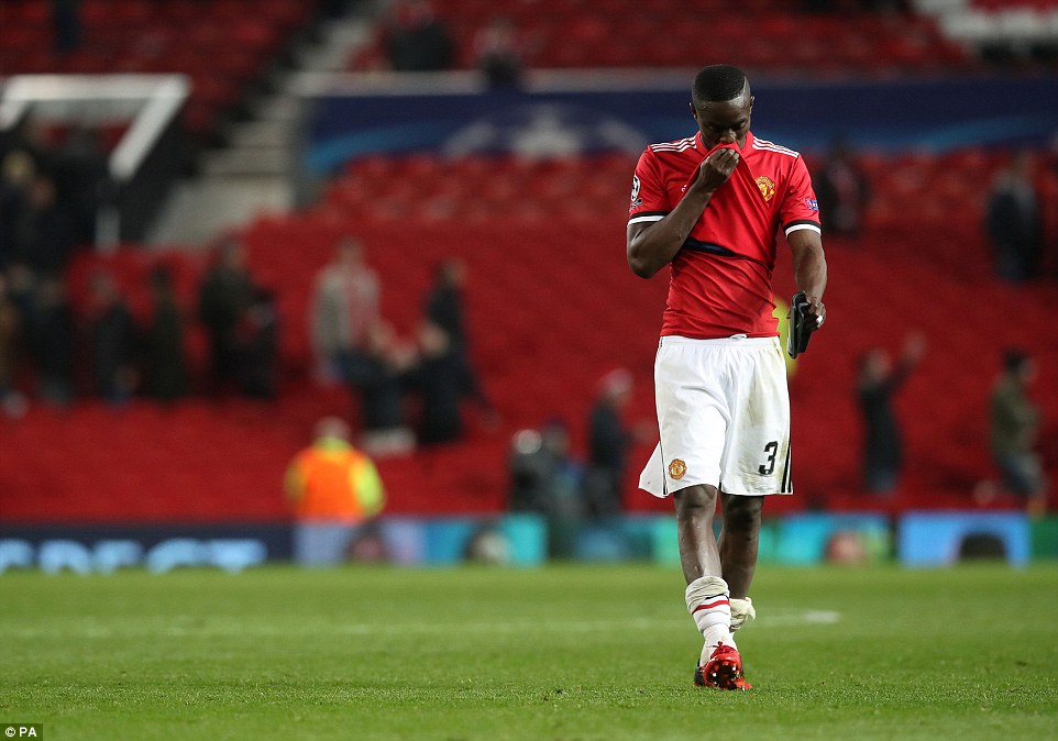 Eric Bailly lặng lẽ rời sân. Phía sau anh là những hàng ghế khán giả trống vắng. Một đêm buồn cho người hâm mộ nửa đỏ thành Manchester.