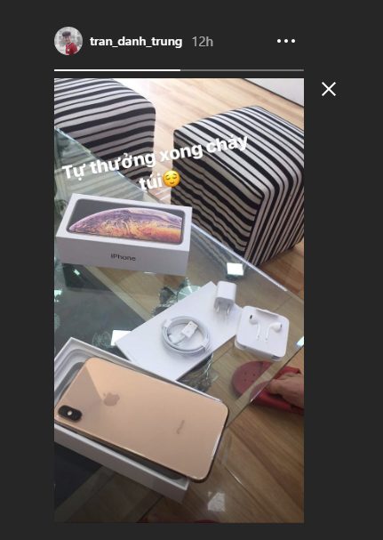 Trái ngược với các đàn anh, Trần Danh Trung lại tự thưởng cho bản thân một chiếc Iphone X sành điệu. Hotboy 19 tuổi còn hóm hỉnh nói rằng: “Tự thưởng xong cháy túi”. Dù không có nhiều cơ hội thể hiện ở VL U23 Châu Á thế nhưng với tài năng của mình, Danh Trung được xem là của để dành của HLV Park Hang Seo cho tương lai.