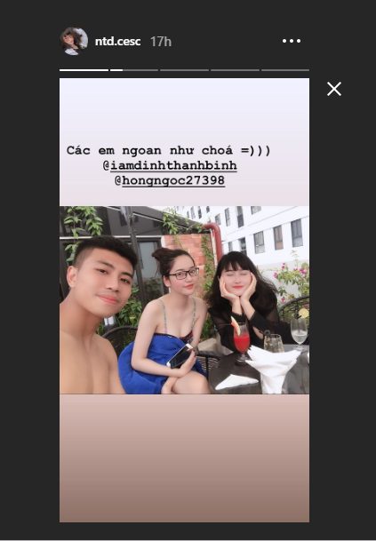 Trên story của bạn gái Huy Hùng, người đẹp Thùy Dương bất ngờ đăng tải một bức ảnh tươi cười cùng Đình Thanh Bình và bạn gái Hồng Ngọc của tiền đạo này. Dường như người yêu Huy Hùng có mối quan hệ khá thân thiêt với cặp đôi này khi cả 3 còn vui vẻ tổ chức nấu ăn tại nhà.