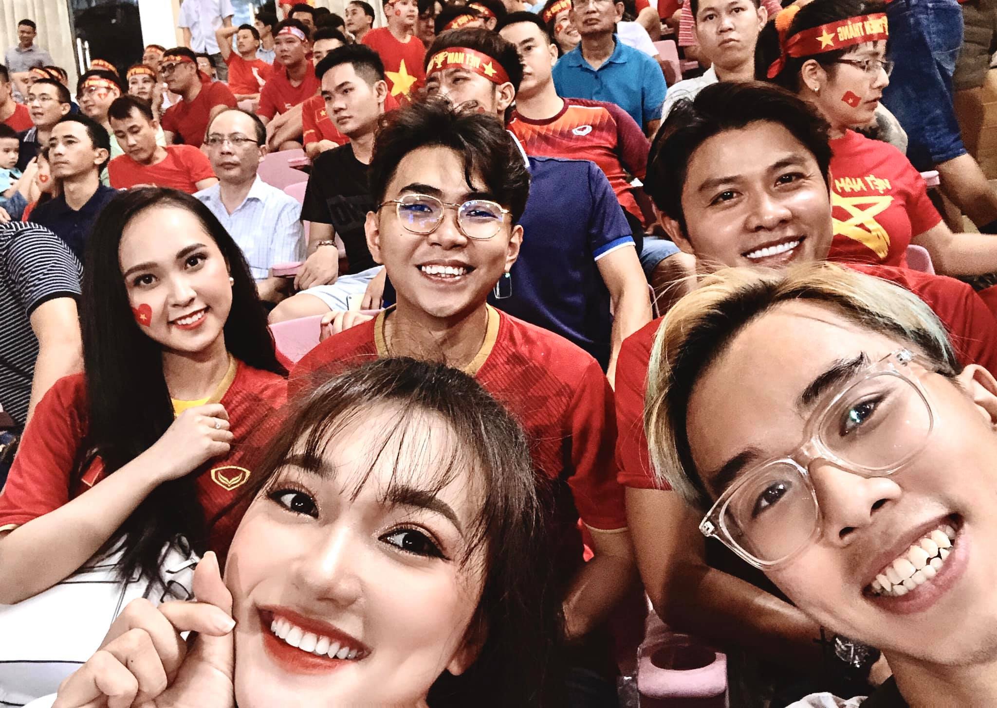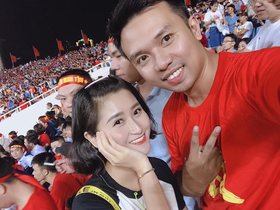 ĐT Việt Nam vừa xuất sắc đánh bại ĐT Malaysia với tỉ số 1-0 trong khuôn khổ vòng loại World Cup 2022. Cùng với đó, các nàng WAGs Việt Nam cũng xuất hiện nhằm tiếp thêm sức mạnh cho các tuyển thủ. Thuỳ Dương, bạn gái tiền vệ Huy Hùng xuất hiện bên cạnh thầy giáo cũ trên khán đài sân Mỹ Đình. Ảnh: FBNV.