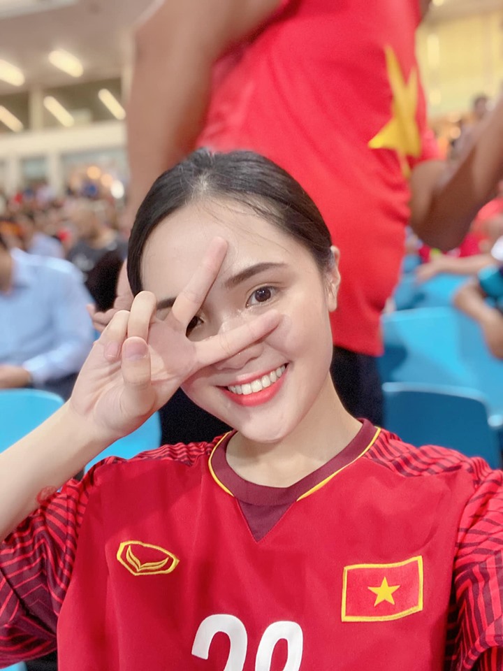 Ngọc Nữ, bạn gái cũ tiền đạo Phan Văn Đức xuất hiện nhanh chóng thu hút sự chú ý. Ảnh: FBNV.