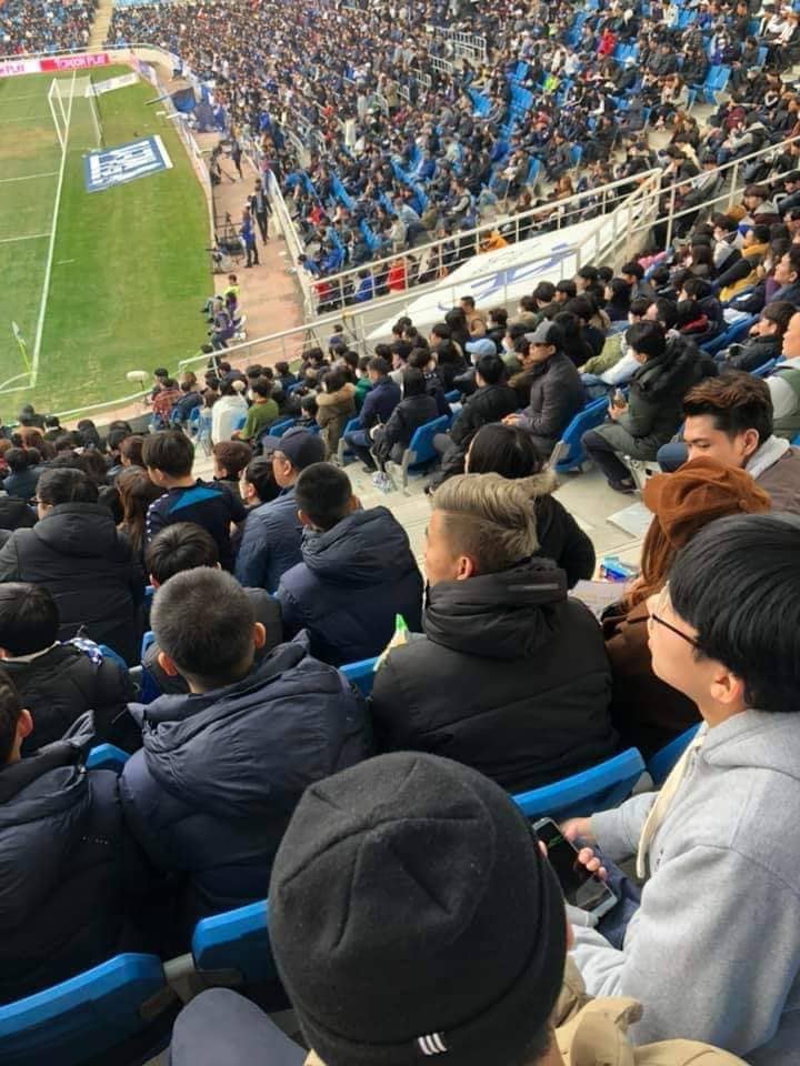 Trong khi đó, Vũ Văn Thanh hiện vẫn đang ở Hàn Quốc để điều trị chấn thương dây chằng đầu gối. Biết người bạn thân có trận đấu đầu tiên tại K-League hôm nay, Văn Thanh cũng đã không ngại đường xa đến SVĐ để cổ vũ cho Công Phượng, hình ảnh được đăng tải bởi một CĐV cũng có mặt tại sân.