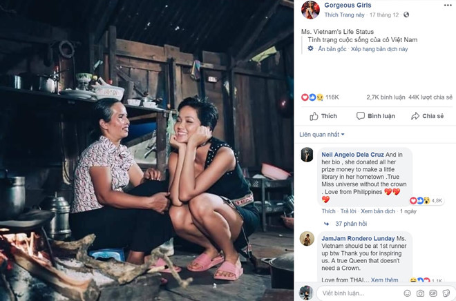 Sự giản dị của Hoa hậu Hoàn vũ H'Hen Niê gây sốt mạng xã hội.