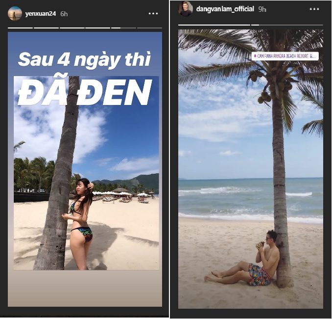 Trên trang cá nhân của Yến Xuân, người hâm mộ cũng phát hiện cô check-in tại khu du lịch này cùng thời điểm với nam thủ thành. Theo hình ảnh từ story mà cả hai chia sẻ, họ đã những khoảnh khắc lãng mạn khó quên ở Nha Trang.