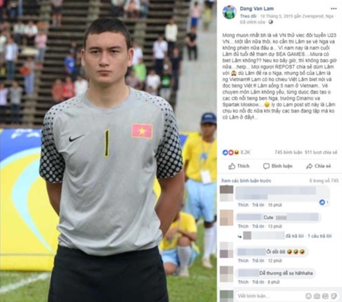 “Lâm đã từng được khoác áo đội U.19 VN tham dự giải U.19 Đông Nam Á năm 2010. Nhưng mong muốn lớn nhất của Lâm là được tập luyện ở đội U.23 VN. Một lần nữa thôi. Nếu không đạt chất lượng thì Lâm sẽ về Nga và không phiền ai nữa đâu ạ. Mọi người chia sẻ giúp Lâm với, dù Lâm đẻ ở Nga nhưng bố Lâm là người VN, mẹ Lâm là người Nga. Lâm có hộ chiếu VN, biết nói tiếng VN. Lâm đã sống ở VN 5 năm. Về chuyên môn, Lâm không yếu vì từng được đào tạo ở các CLB danh tiếng bên Nga, trung tâm đào tạo Dinamo và Spartak Moscva…”.