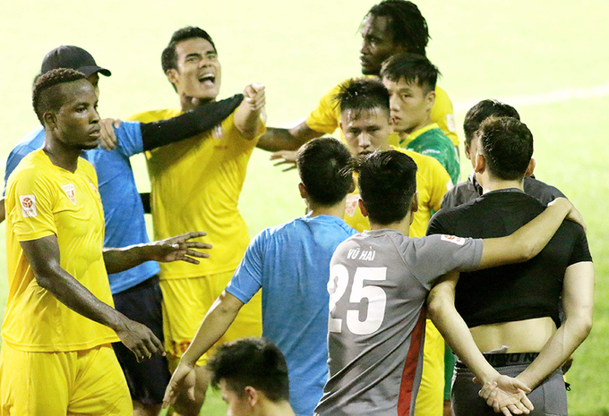 Ngay sau khi trận đấu kết thúc với tỉ số 3-2 nghiêng về đội chủ nhà, một số cầu thủ đất Cảng như Quốc Trung, Lê Văn Thắng, Đình Bảo…đã lao vào định đánh Đặng Văn Lâm với lý do thủ môn đội mình mắc sai lầm dẫn đến bàn thua thứ 3.