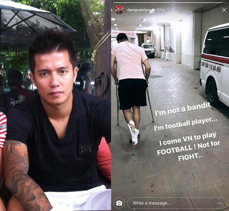 Quá bất ngờ trước hành động của người đàn anh đang là thành viên ban huấn luyện đội bóng, Đặng Văn Lâm đã bỏ chạy và vấp ngã dẫn đến chấn thương mắc cá chân.