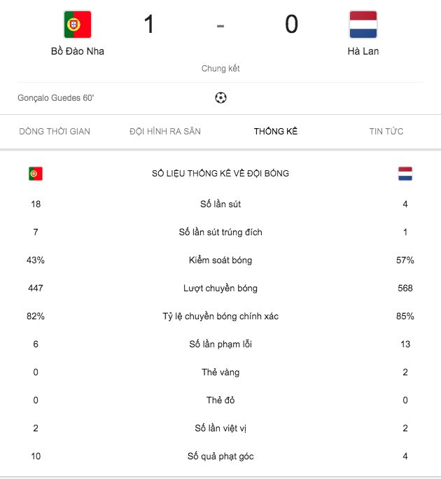 Chỉ 3 phút sau tình huống bỏ lỡ đó, Hà Lan phải trả giá đắt với pha phối hợp rất bài bản của Seleccao. Bernardo Silva nhả bóng điệu nghệ cho Goncalo Guedes.