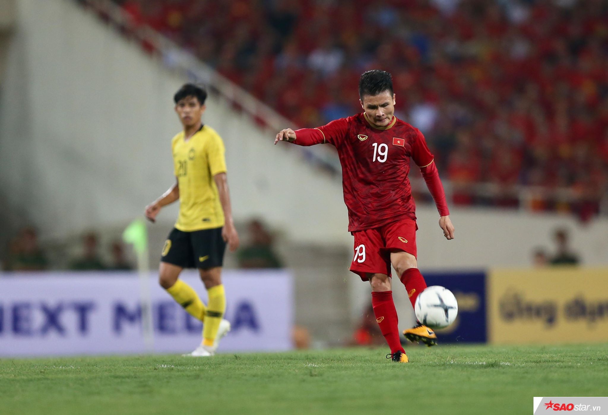 Cuối cùng, điều gì đến cũng phải đến, phút 40, nhận đường chuyền từ Quế Ngọc Hải, Quang Hải có pha ngả người dứt điểm đẹp mắt làm tung lưới thủ môn ĐT Malaysia. Có được bàn thắng, thầy trò HLV Park Hang Seo đã thi đấu chắc chắn và bảo toàn được tỉ số cho đến hết thời gian thi đấu.