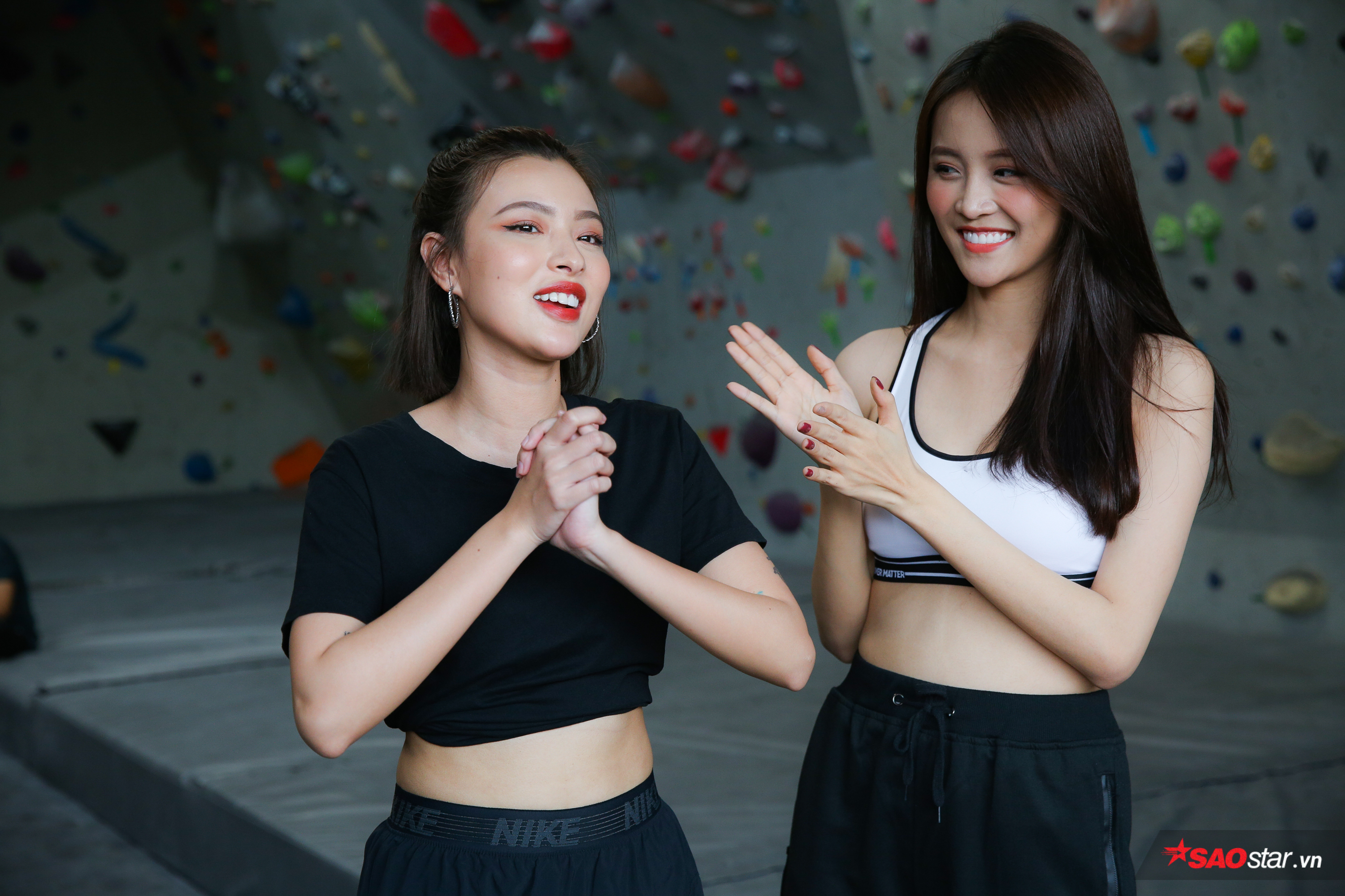 Hai cô nàng vui vẻ chia sẻ về việc tập luyện của bản thân.