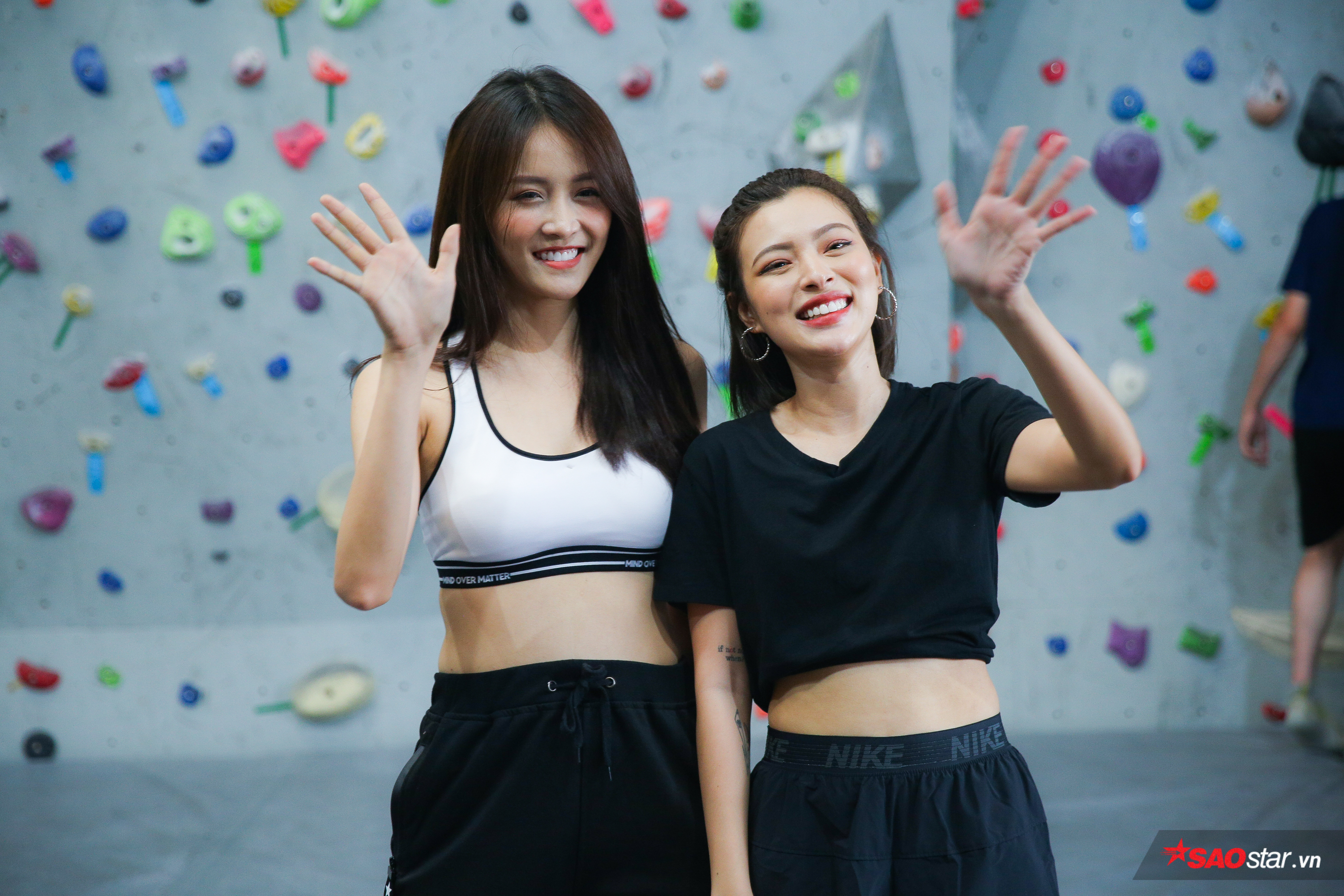 Hai cô nàng bước vào phần khởi động trước khi bắt đầu hành trình chinh phục những vách núi.