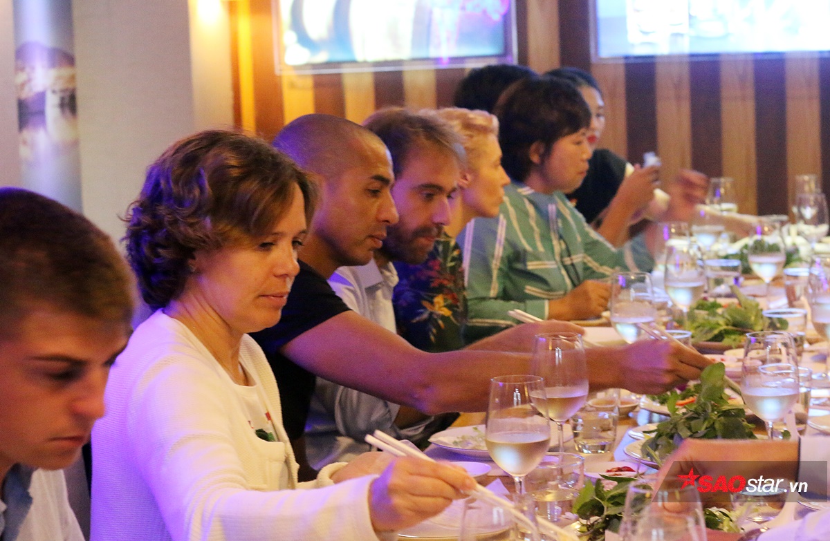 Tại đây, David Trezeguet đã trò chuyện khá thân mật cùng các người bạn. Cựu tiền đạo CLB Juventus đã thưởng thức các món ăn của Việt Nam.