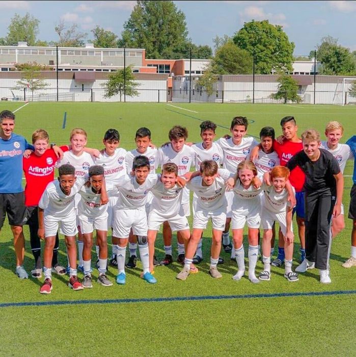 Cách đây không lâu, đội bóng thiếu niên Soccer Arlington có trận giao hữu. Barron Trump (áo xám) và bạn bè cũng góp mặt tại sân bóng.