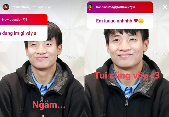 Trong thời gian dưỡng thương, Trọng Ỉn đã chơi trò hỏi đáp trên story instagram, khi được fan hâm mộ hỏi han “đang làm gì vậy” thì anh chàng đã đăng hình của cầu thủ Bùi Tiến Dũng và trả lời “ngắm”. Hay khi có bạn nói “Em iu anh” thì Trọng vẫn đăng hình Dũng và nói “Tui cũng vậy”. Không ngờ rằng, người đem lại động lực cho anh chàng lại là Tiến Dũng, Trọng đang tranh thủ để ôn lại kỷ niệm xưa chăng?