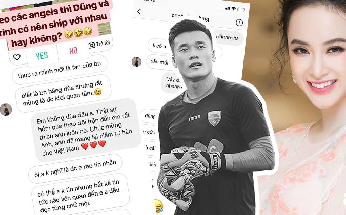 Hơn hết, Angela Phương Trinh còn công khai tin nhắn với Bùi Tiến Dũng. Trong đó có đoạn, thủ môn quốc dân nhắn với Angela Phương Trinh: “Ôi, anh không nghĩ là được em trả lời tin nhắn. Có thể em không tin nhưng bất kể tin tức nào liên quan đến em anh đều đọc từng chữ một”.
