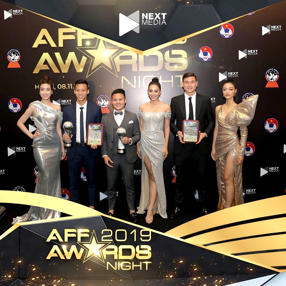 Tại lễ trao giải AFF Awards tối qua, dàn Hoa hậu, Á hậu Việt Nam gồm Đỗ Mỹ Linh, Trần Tiểu Vy, Kiều Loan bất ngờ xuất hiện bên cạnh các cầu thủ điển trai của tuyển Việt Nam như Quang Hải, Đặng Văn Lâm, Quế Ngọc Hải.