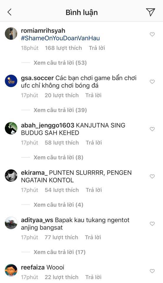 Trang cá nhân của Đoàn Văn Hậu bị các CĐV Indonesia “tấn công” đồng loạt.