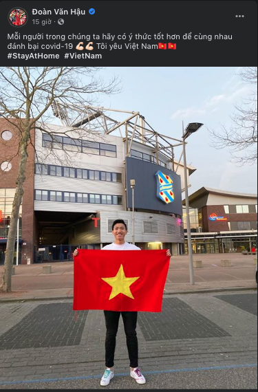 Hôm qua 26/3, Văn Hậu đã đăng tải bức ảnh chụp trước SVĐ Abe Lenstra Stadion của CLB Heerenveen kèm lời kêu gọi mọi người có ý thức tốt hơn để cùng nhau đánh bại Covid-19.