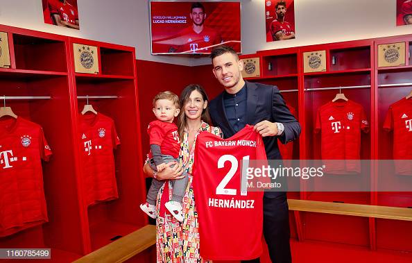 Hậu vệ mới chuyến sang Bayern Munich từ Ateltico với giá 80 triệu Euro, Lucas Hernandes đã xuất hiện cùng bạn gái Amelia Lorente trong buổi ra mắt tại sân Allianz arena.