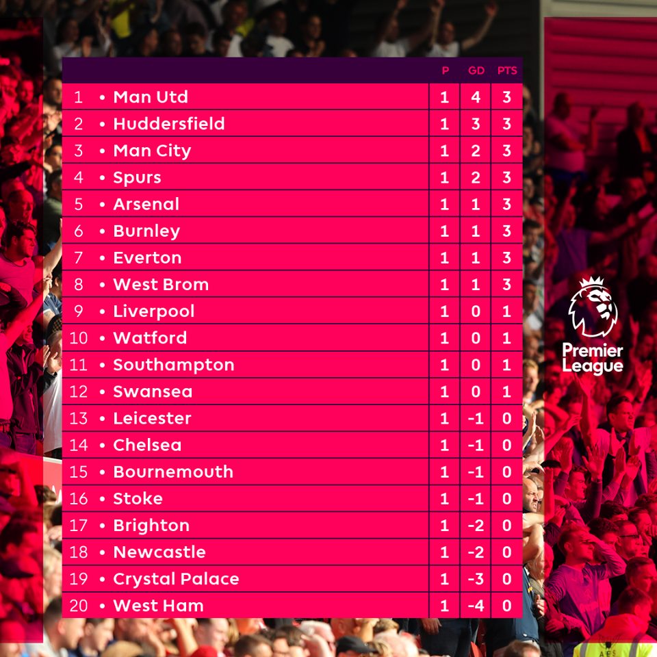 Bảng xếp hạng Ngoại Hạng Anh sau vòng 1