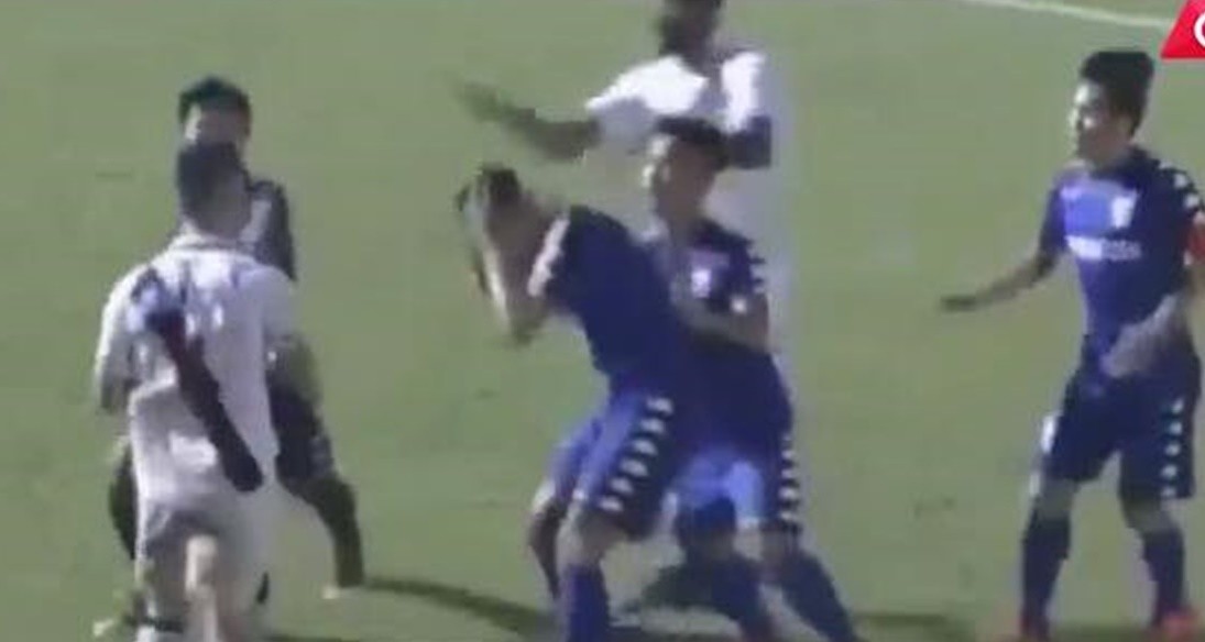 Clip cầu thủ của CLB Vasco Gama đánh Tấn Tài (CLB Bình Dương). Nguồn: On Football