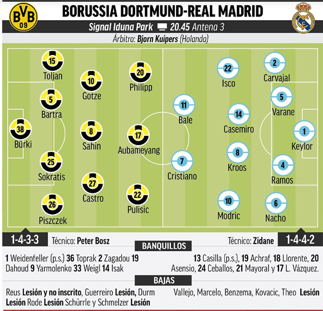 Đội hình dự kiến trận Dortmund - Real Madrid.