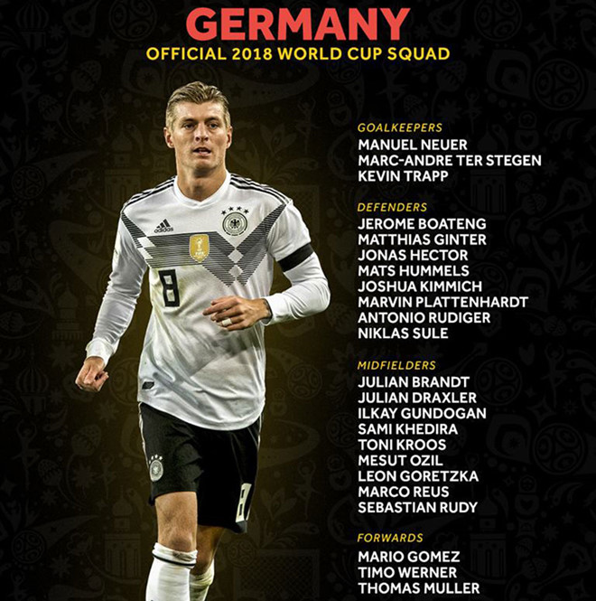 Danh sách 23 cầu thủ của tuyển Đức ở World Cup 2018.