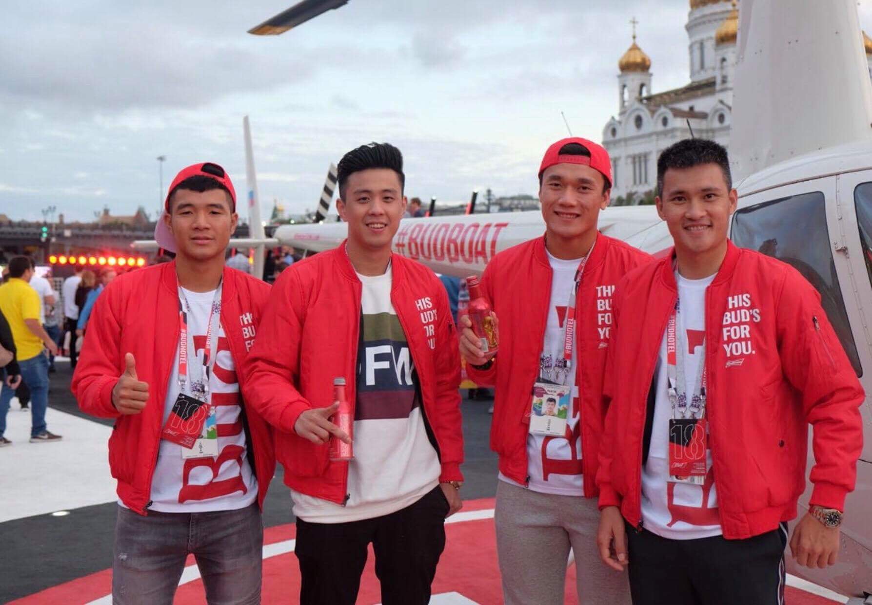 Trước đó bộ 4 đã có những ngày trải nghiệm không khí World Cup tràn ngập nước Nga. Huyme, Bùi Tiến Dũng và Hà Đức Chinh liên tục tập nhật story về hoạt động của họ tại World Cup.