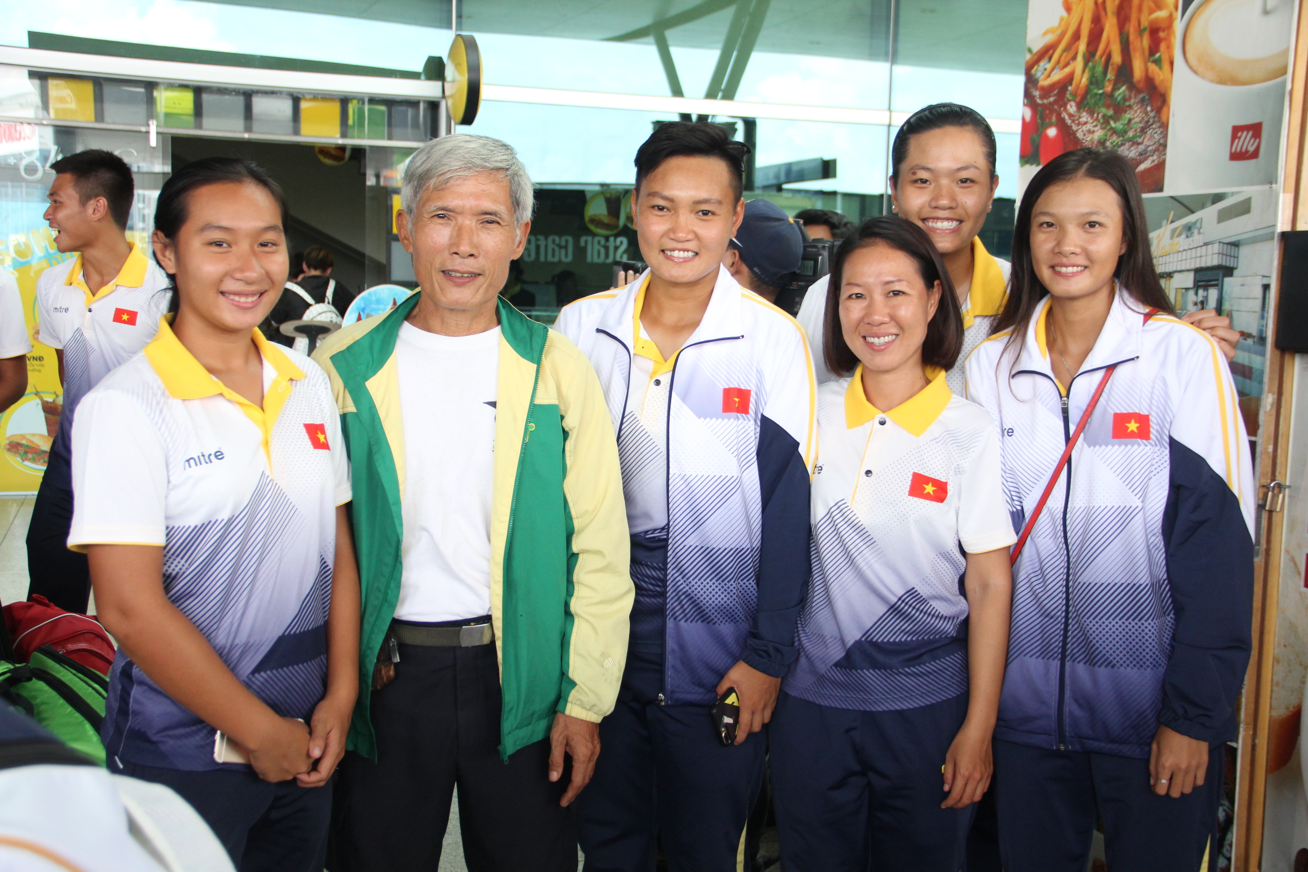 Đội tuyển nữ Việt Nam tươi tắn trước giờ khởi hành.