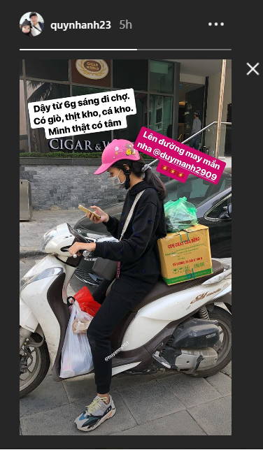 Bạn gái Duy Mạnh là cô nàng xinh đẹp Nguyễn Quỳnh Anh vừa đăng tải trên story Instagram: “Dậy từ 6g sáng đi chợ. Có giò, thịt kho, cá kho. Mình thật có tâm. Lên đường may mắn nha” cùng hastag instagram duymanh2909.