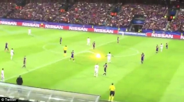 Một quả pháo sáng lớn bị các CĐV bắn thẳng xuống sân suýt trúng vào trọng tài chính.