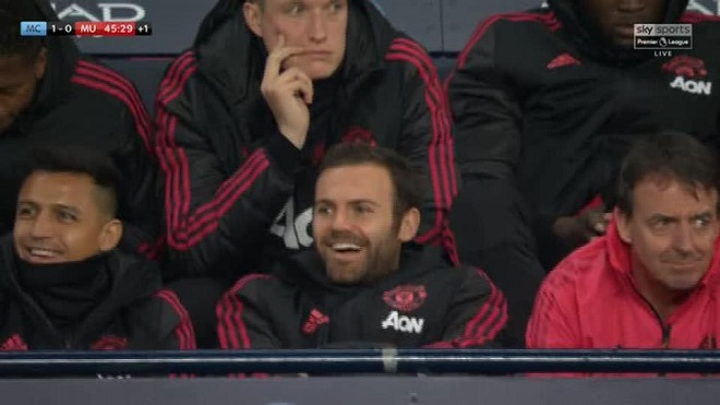 Trong trận thua 1-3 trước Man City của M.U, giữa lúc “quỷ đỏ” đang bị dẫn trước 1-0, tiền vệ Juan Mata cùng tiền đạo Alexis Sanchez đã cười khúc khích trên băng ghế dự bị. Chẳng hiểu vì lý do gì cả 2 cầu thủ này liên tục tỏ ra thích thú trước viễn cảnh M.U thua trận.